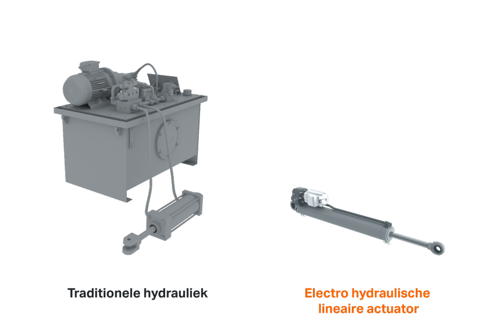 Onze lineaire actuatoren hebben over het algemeen dezelfde afmetingen als een volledig hydraulische variant. Hierdoor zijn de hydraulische cilinders van bestaande machines eenvoudig om te wisselen voor elektrische lineaire actuatoren. Het voordeel is wel dat er ruimte wordt bespaard, doordat er geen centraal hydraulische unit meer nodig is.